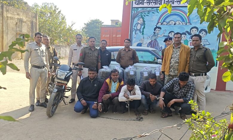 45 किलो गांजा के साथ 5 तस्कर गिरफ्तार, सरसींवा पुलिस की कार्यवाई