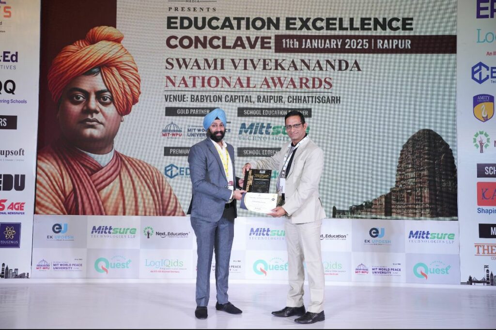 ब्रह्मोस न्यूज रायगढ़। जिले की प्रतिष्ठित शैक्षणिक संस्था संस्कार पब्लिक स्कूल के डायरेक्टर रामचन्द्र शर्मा एवं प्राचार्या श्रीमती रश्मि शर्मा को शिक्षा के क्षेत्र में शानदार कार्य करने के लिए स्वामी विवेकानंद राष्ट्रीय अवार्ड से सम्मानित किया गया। संस्था के एक्टिंग डायरेक्टर सीपी देवांगन ने बताया कि ईयू संस्था के द्वारा शिक्षा के क्षेत्र में शानदार कार्य करने वाले भारतवर्ष के स्कूलों व उनके डायरेक्टर तथा प्राचार्य के द्वारा की जा रही गतिविधियों के लिए नाम आमंत्रित किए गए थे। जिसमें संस्कार पब्लिक स्कूल के द्वारा किए जा रहे शैक्षणिक कार्य, व्यक्तित्व विकास कार्यक्रम, खेल-कूद कार्यक्रम अन्य कार्यक्रमों की रूपरेखा बनाकर नामांकन किया गया था। जिसमें शानदार कार्य करने को लेकर संस्कार पब्लिक स्कूल के डायरेक्टर रामचन्द्र शर्मा को स्वामी विवेकानंद राष्ट्रीय पुरस्कार से नवाजा गया।