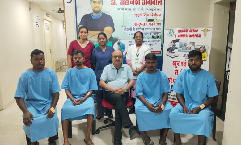 निरंजन निषाद उम्र 30 साल ग्राम बनोरा ,अजय राणा उम्र 22 साल ग्राम बनोरा,जुबेर अली उम्र 30 साल जामगांव,गुरुदेव सीदार उम्र 30 साल ग्राम बनोरा इन सभी मरीजों का बनोरा वाले संत श्री प्रिय दर्शी राम जी के आशीर्वाद से डॉक्टर राजू अग्रवाल ने रायगढ़ आर्थो एण्ड जनरल हॉस्पिटल में निशुल्क ऑपरेशन किया ।
