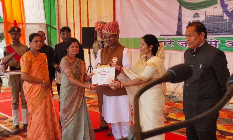 ब्रह्मोस न्यूज सारंगढ़ । गणतंत्र दिवस के अवसर पर सारंगढ़ बिलाईगढ़ जिले के उत्कृष्ट कार्य करने वाले अधिकारीयों , कर्मचारियों को प्रशस्ति पत्र व स्मृति चिन्ह भेंट कर सम्मानित किया गया। आदिवासी विकास शाखा विभाग से दोनों अधीक्षिका श्रीमती रथबाई भारद्वाज छिन्द , श्रीमती उर्मिला अजगल्ले को छात्रावास में उत्कृष्ट कार्यों में प्रमुख रूप से – छात्रावासी बच्चों का अध्यापन कार्य , सांस्कृतिक एवं साहित्यिक गतिविधियों में विशेष रुचि , शत प्रतिशत परीक्षाफल ,एवं विभाग द्वारा सौंपे गए कार्यों का उचित क्रियान्वयन , किचन गार्डन , सौदर्यीकरण , विशेष कोचिंग क्लास , वृक्षारोपण इत्यादि कार्यों में उत्कृष्ट प्रदर्शन के लिए गणतंत्र दिवस जिला स्तरीय समारोह के मुख्य अतिथि मरवाही विधायक प्रणव कुमार मरपच्ची , विधायक सारंगढ श्रीमती उत्तरी गनपत जांगड़े द्वय के द्वारा प्रशस्ति पत्र , स्मृति चिन्ह प्रदान कर सम्मानित किया गया। उक्त सम्मान प्राप्ति पर जिले की ट्राईबल विभाग एवं शिक्षा विभाग के साथ क्षेत्र के पालकों व ग्रामीणों द्वारा हर्षोल्लास के साथ बधाई एवं शुभकामनाएं दोनों अधिक्षिकाओ को दिया गया।