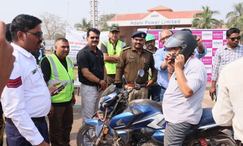 सड़क सुरक्षा अभियान:यातायात पुलिस के साथ अडानी पावर ने बांटे हेलमेट