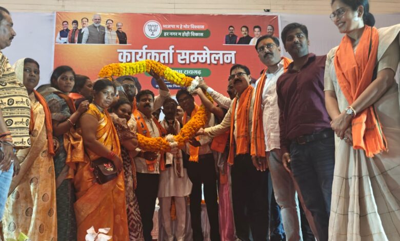 वार्ड नंबर 40 निवासी लोकसभा सांसद रहे अजीत जोगी के सांसद प्रतिनिधि पैकराम साहू, जितेश कुमार अग्रवाल,पूर्व कांग्रेस सचिव लक्ष्मी देवी राजपूत ने कांग्रेस छोड़ कर मंच पर भगवा पहनकर भाजपा प्रवेश किया।