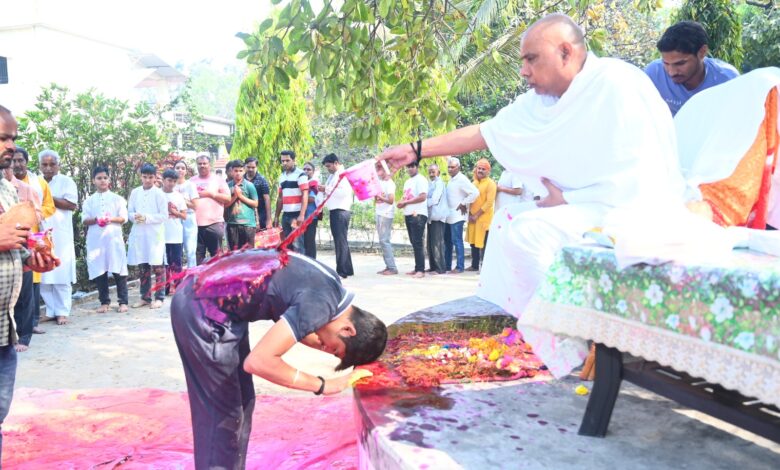 गुरु बाबा प्रियदर्शी राम के चरणों में गुलाल अर्पित करने उमड़े शहरवासी