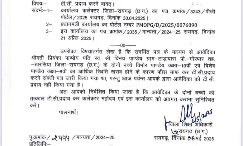 ब्रह्मोस न्यूज रायगढ़। कलम में बहुत ताकत होती है बस शर्त यह है कलम का उपयोग जनहित और लोकहित में किया जा रहा हो। फिर चाहे वह कलम प्रशासनिक अधिकारियों के हो या फिर लोकतंत्र के चौथे स्तंभ का, कलम की नोक जब न्याय के लिए टेढ़ी होती है। फिर पीड़ित को इंसाफ पाने से कोई नहीं रोक सकता है। वेदिक इंटरनेशनल स्कूल के अमानवीय कृत दो बच्चों के टी. सी. देने के एवज में उसके मां से 6 लाख 15 हजार के मांग करने के संबंध में खबर का प्रकाशन किया था। आवेदिका के आवेदन पत्र और मीडिया खबर के माध्यम से जिला कलेक्टर मयंक चतुर्वेदी से मामले को संज्ञान में लेकर कार्यवाही करने की अपेक्षा के बाद रायगढ़ जिला शिक्षा विभाग हरकत में आया है। इस मामले में जिला शिक्षा अधिकारी रायगढ़ ने वैदिक इंटरनेशनल स्कूल को तत्काल प्रियंका पांडेय पति स्वर्गीय विनय पांडेय के दोनों बच्चों का टी.सी. देने को तत्काल निर्देशित किया है। कार्यालय जिला शिक्षा अधिकारी रायगढ़ जिला पंचायत परिसर, छोटे अतरमुड़ा रायगढ़ ने पत्र क्रमांक/2443 जारी कर संचालक / प्राचार्य वैदिक इंटरनेशनल स्कूल पटेलपाली जिला-रायगढ़ को पीड़ित परिवार को टी.सी. प्रदाय करने को कहा है। संदर्भित पत्र के माध्यम से आवेदिका श्रीमती प्रियंका पाण्डेय पति स्व. श्री विनय पाण्डेय ग्राम-टाड़ापारा पो. गोरपार तह. – खरसिया जिला-रायगढ़ (छ.ग.) के दोनों बच्चे विभोर पाण्डेय कक्षा 10 वीं एवं विशेष पाण्डेय कक्षा-8 वीं का आर्थिक स्थिति खराब होने के कारण फीस माफ कर टी.सी. प्रदाय करने संबंधी पत्र जारी किया गया था, परन्तु आज पर्यन्त आपके द्वारा आवेदिका को टी.सी. प्रदाय नहीं किया गया है। आपको निर्देशित किया जाता है कि आवेदिका के दोनों बच्चों को तत्काल टी.सी.प्रदाय कर कलेक्टर महोदय एवं इस कार्यालय को अवगत कराना सुनिश्चित करें।