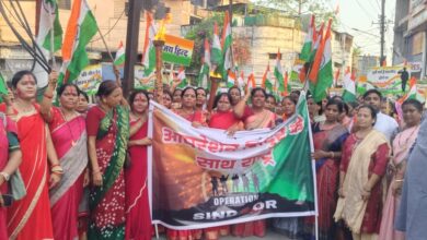 सेना के सम्मान में नारी शक्ति मैदान मेंराष्ट्रीय सुरक्षा के लिए एकजुट होकर शहर की महिलाओं ने निकली सिंदूर तिरंगा…