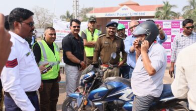 सड़क सुरक्षा अभियान:यातायात पुलिस के साथ अडानी पावर ने बांटे हेलमेट